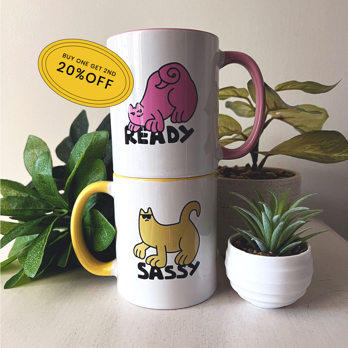 Don't miss the Mug Deal! These mugs are very cool, bright and colorful. Those that have Cat Dudes on them are also loaded with the vibe! Get one for yourself, and one for a friend!